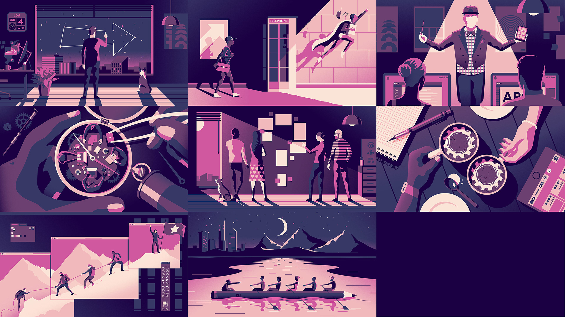 I was delighted to be commissioned by the ridiculously talented InVision team to produce conceptual illustrations for DesignBetter.Co—the essential guide to product design. Currently the DB.co library features three books: Design Leadership Handbook, Principles of Product Design and Design Thinking Handbook, each of which I was lucky enough to illustrate.